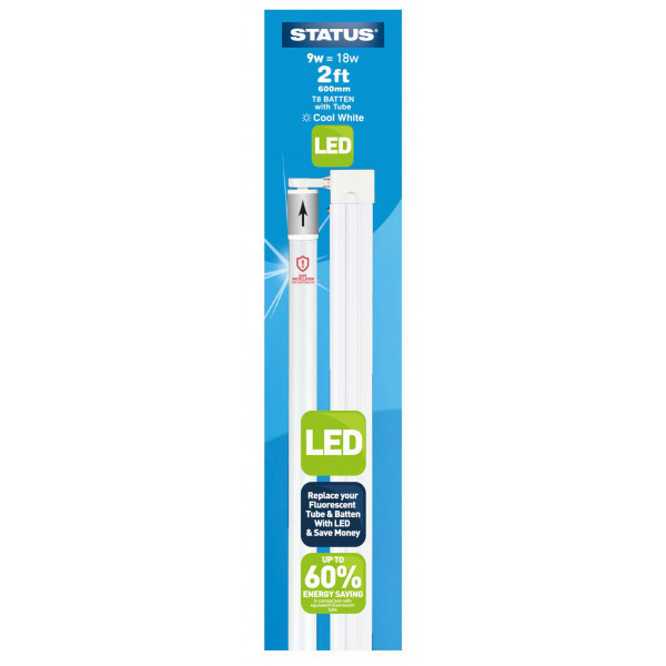 LED T8 Tube Bulb with Batten Fitting – 600mm – 9W – 750 Lumen
